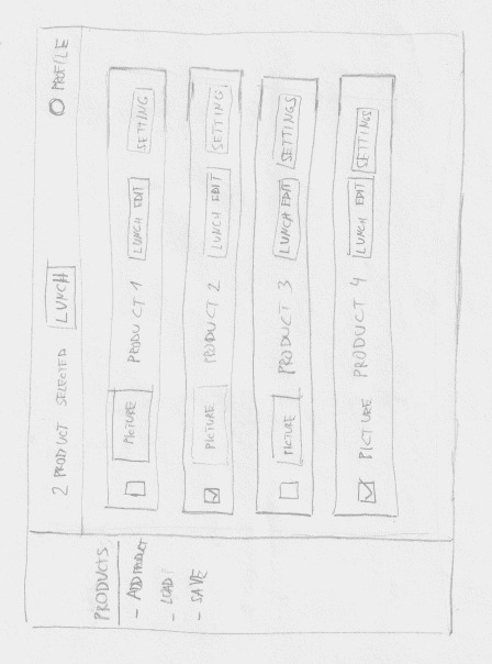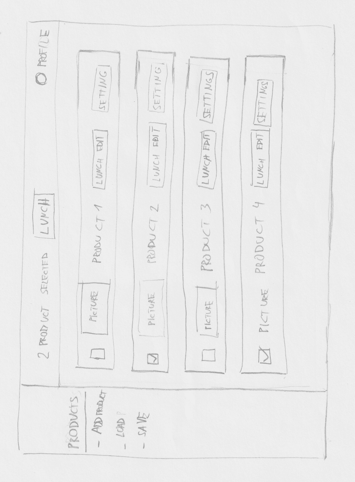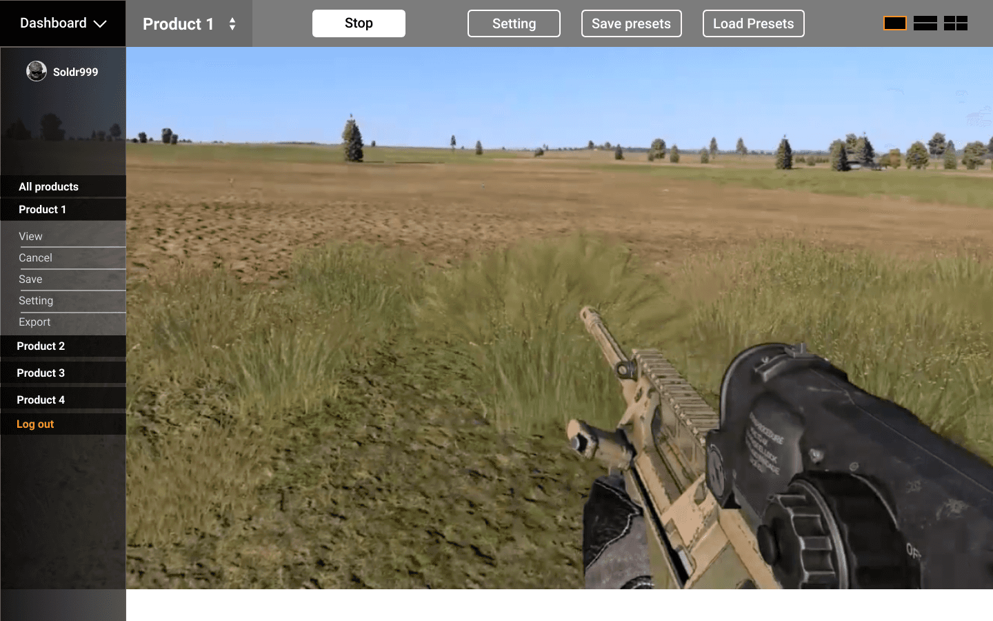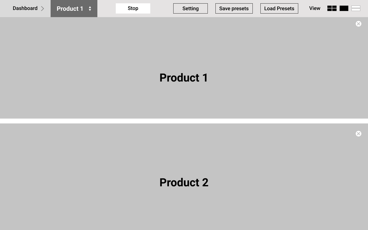 Dashboard, or the main task of this exercise. In this part, I should include the products that the user chooses, edits, and adds to the queue in the selected order. The user selects each product separately and chooses the order in which to launch them. The best way to do this, in my opinion, is by using checkboxes and allowing the order to be changed with a drop-down menu. After selecting the product(s), the options for launching the product, saving it, or uploading already saved products with configurations will appear at the top of the navigation.